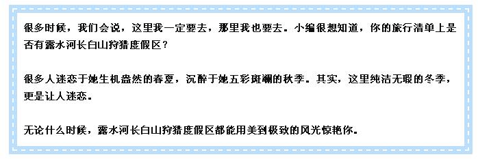 相遇最美人間雪,邂逅露水河長白山狩獵度假區(qū)!
